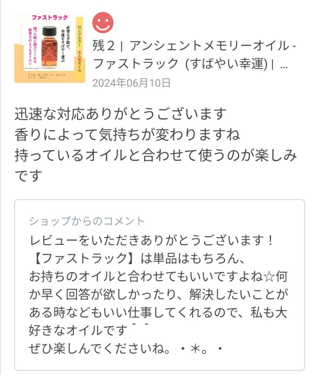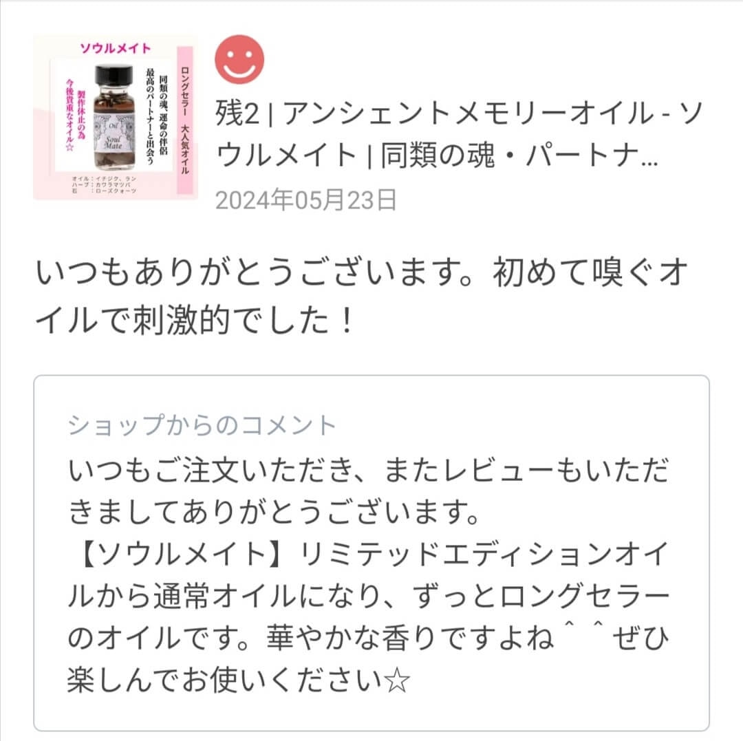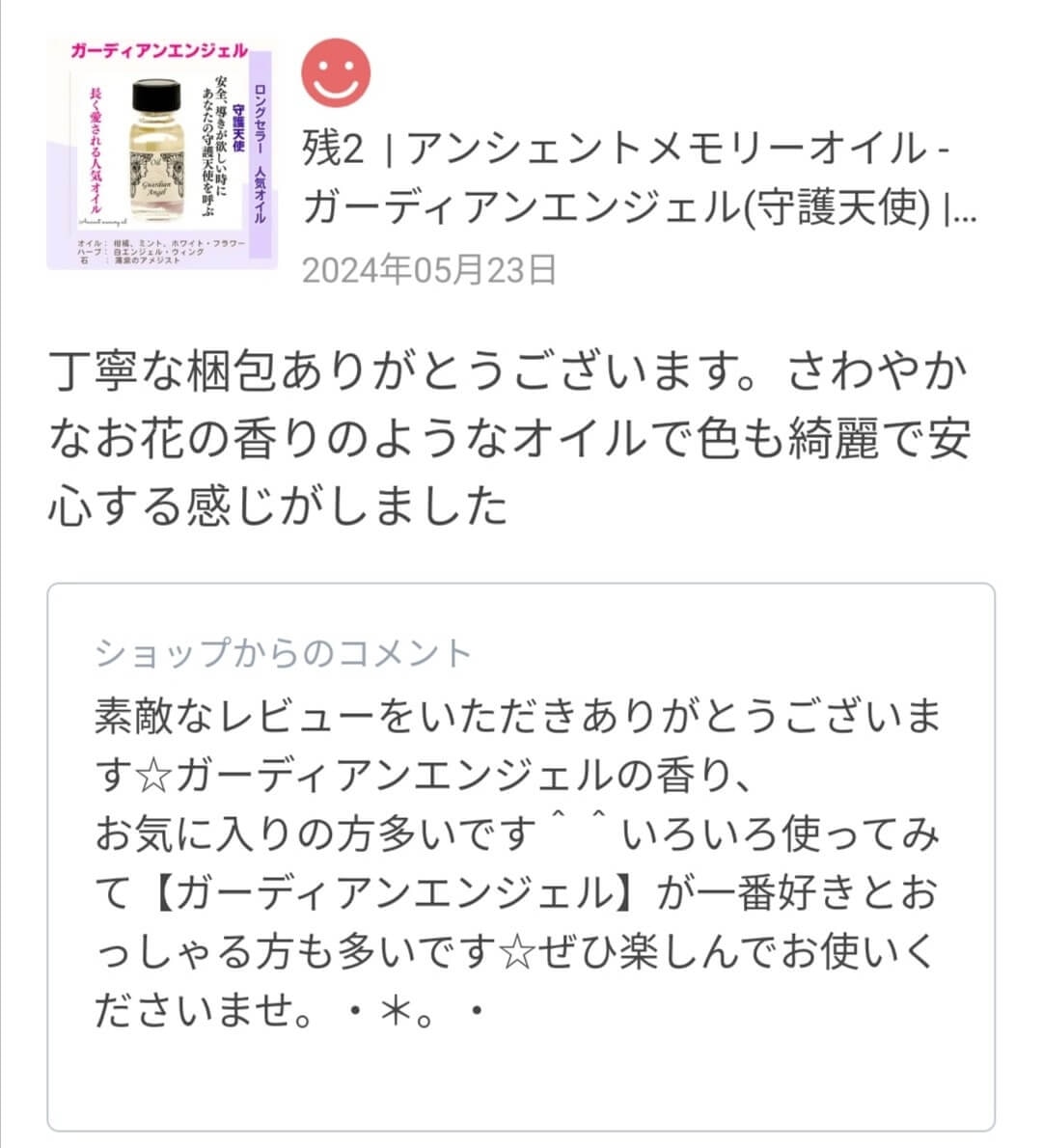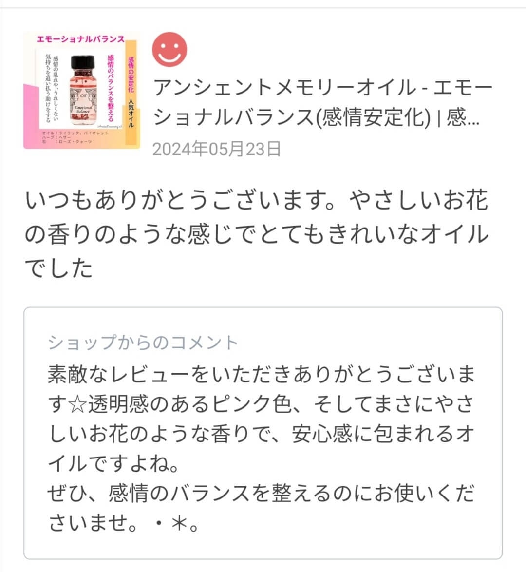 ご購入頂いたお客様からオイルのご感想や当ショップについて感想を頂いています。