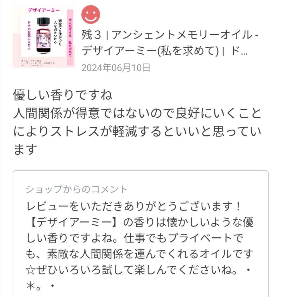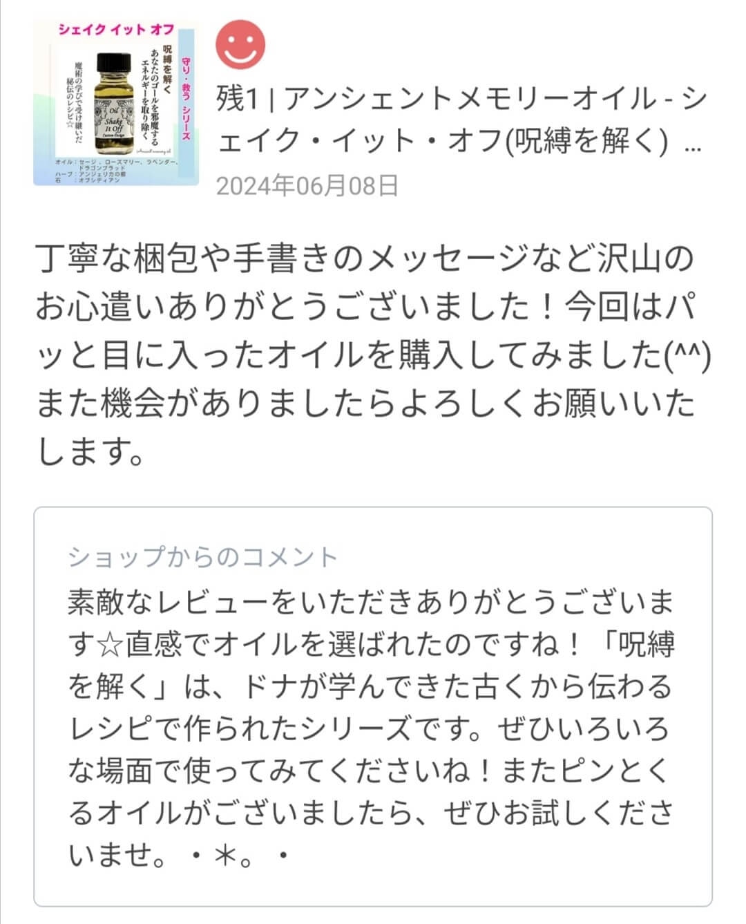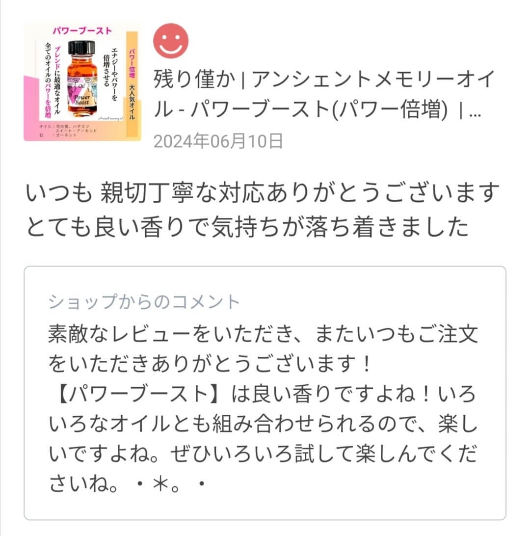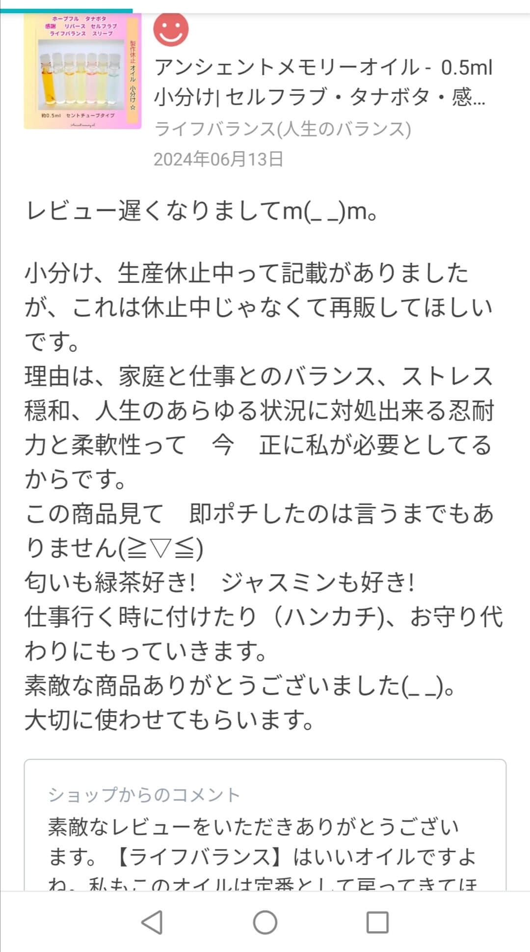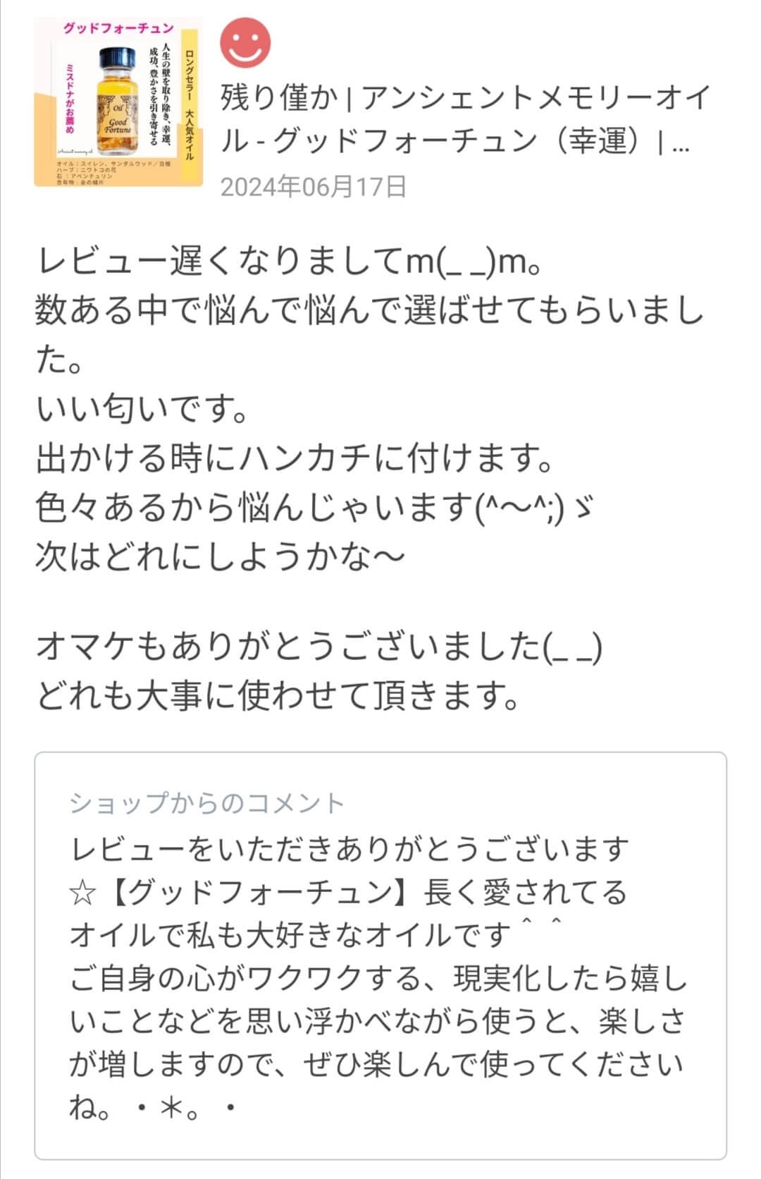 ご購入頂いたお客様からオイルのご感想や当ショップについて感想を頂いています。