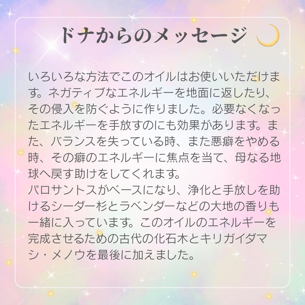 パロサントスがベースになり、浄化と手放しを助けるシーダー杉とラベンダーなどの大地の香りも一緒に入っています。
