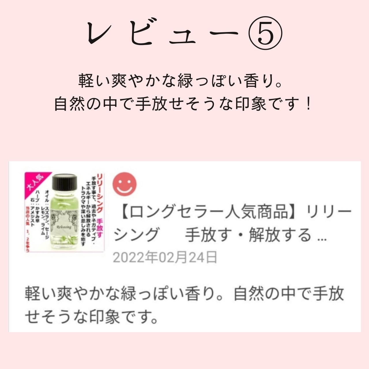 お客様の声・レビュー⑤『軽い爽やかな緑っぽい香り。自然の中で手放せそうな印象です!』