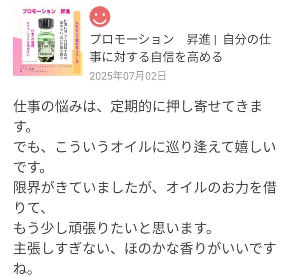 お客様の声・レビュー『こういうオイルに巡り逢えて嬉しいです!』
