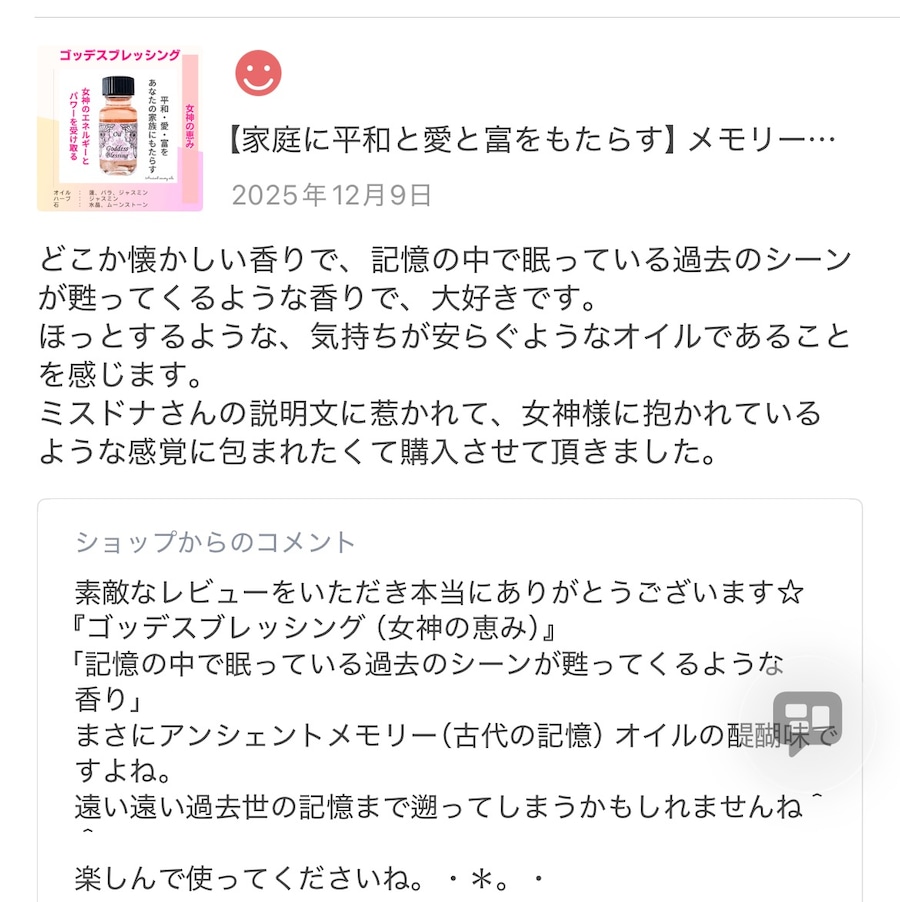 【平和と愛と富をもたらす】メモリーオイル - ゴッデスブレッシング (女神の恵み)