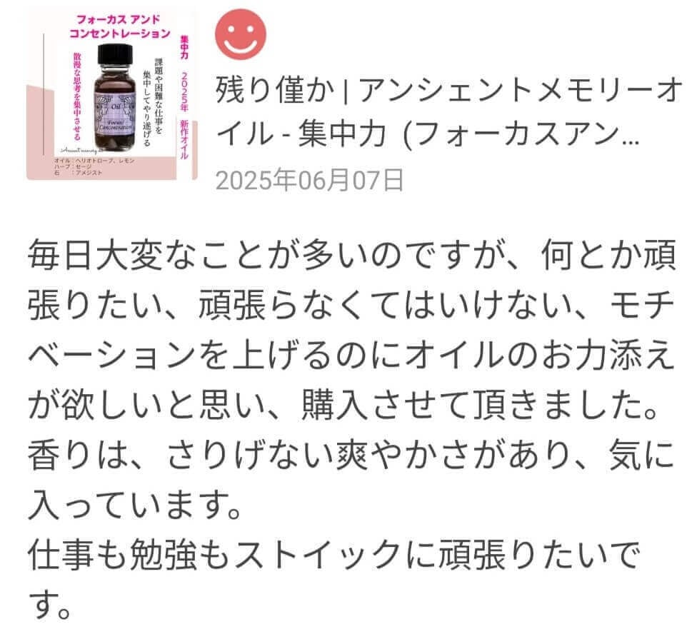 残2 | 集中力 フォーカスアンドコンセントレーション - アンシェントメモリーオイル | 課題や仕事をクリアする | 2025年新作
